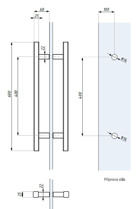 H25X25 SSS - Kartáčovaná nerezová ocel