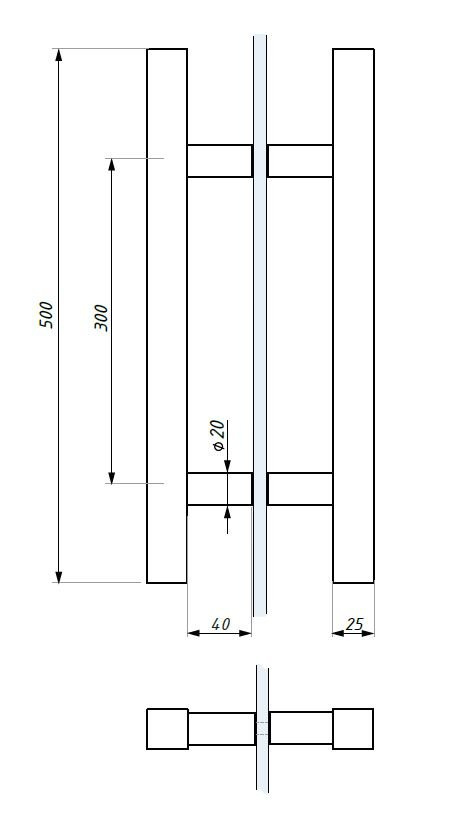 Skleněné oboustranné madlo, 25x25 mm, délka 500 mm Více informací